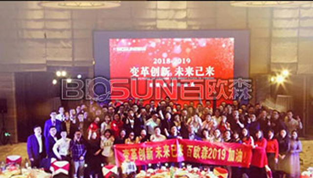 一年一度的百歐森年度盛典,于2019年1月14-15日,在惠州白鷺湖喜來登酒店召開。平日里少修邊幅的理工男們西裝革履、秒變小鮮肉!平時腳踩風火輪的工作狂妹們盛裝加身,即刻顏值擔當!當工作總結時每個人娓娓而談,當曖場視頻引爆全場。當節目歡聲雷動,大家把酒言歡時,所有人的內心是翻江倒海般地感慨感動……