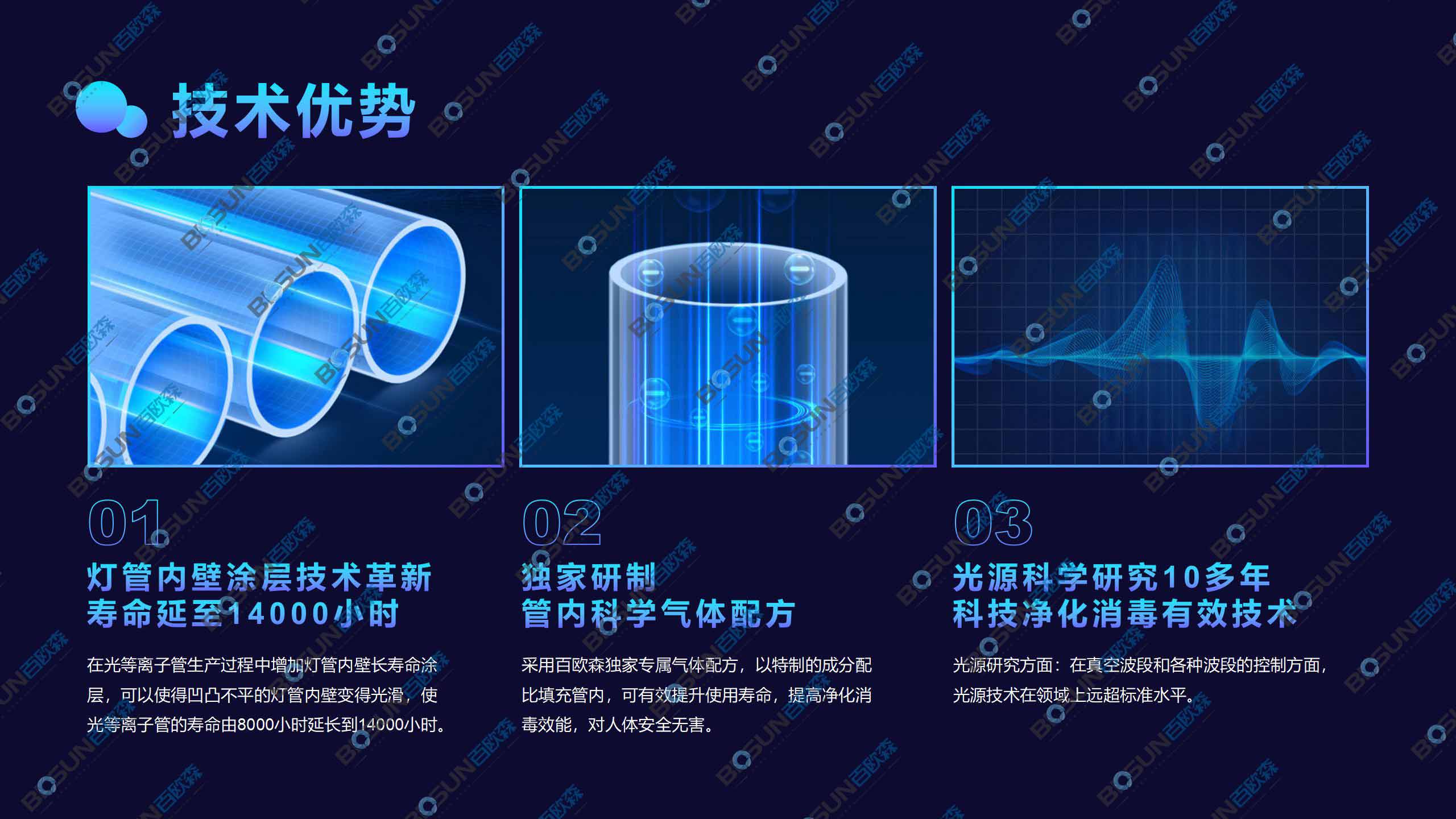 上文一直在提百歐森光等離子這項黑科技,下面就來看看他到底是來自何方神圣?從2007年開始深圳市百歐森環保科技股份有限公司就深入研究高效空氣凈化技術,在百歐森眾多的專利技術中,最具跨時代意義的莫過于“百歐森光等離子技術”,該技術是經過了國家科學技術委員會審查并評選為國內環保領域的最新技術。經過10多年的深入研究到2022年,已經是目前空凈圈公認的大咖,強大的空氣凈化消殺實力,使百歐森得以長期為重點市政基建工程,為醫院、學校、酒店、軍事博物館、大型樓宇等提供智能凈化解決方案。